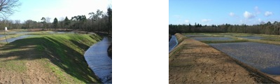 Nu echter voor een spiegelbeeldige functie: met rietfilters wordt het water thans gezuiverd van meststoffen. Inspiratiebron waren díe Italiaanse renaissance-landgoederen, waar water een belangrijke rol speelde. Door een fraaie bocht en een geleidelijk oplopende heuvel te creëren, met aan de voet daarvan het ‘canal grande’ heeft landschapsarchitect Berno Strootman een heuse Belvedère gemaakt. Van hieraf is het hele project in een fraai perspectief te overzien. De dijk die vervolgens vanaf dit uitzichtpunt langs het kanaal naar het zuiden loopt, is bewust hoog gemaakt, zodat wandelaars altijd over het riet heen kunnen kijken.